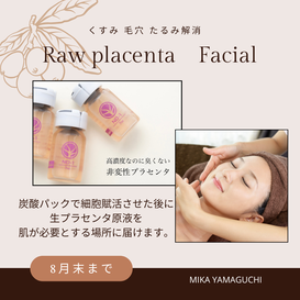 クレンジング洗顔→温熱マスク(ディープクレンジング)→炭酸パック(ヘッドデコルテM)→生プラセンタ導入→肌別お仕上げ