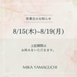 8月15日(木)から8月19日(月)までお休みさせていただきます。